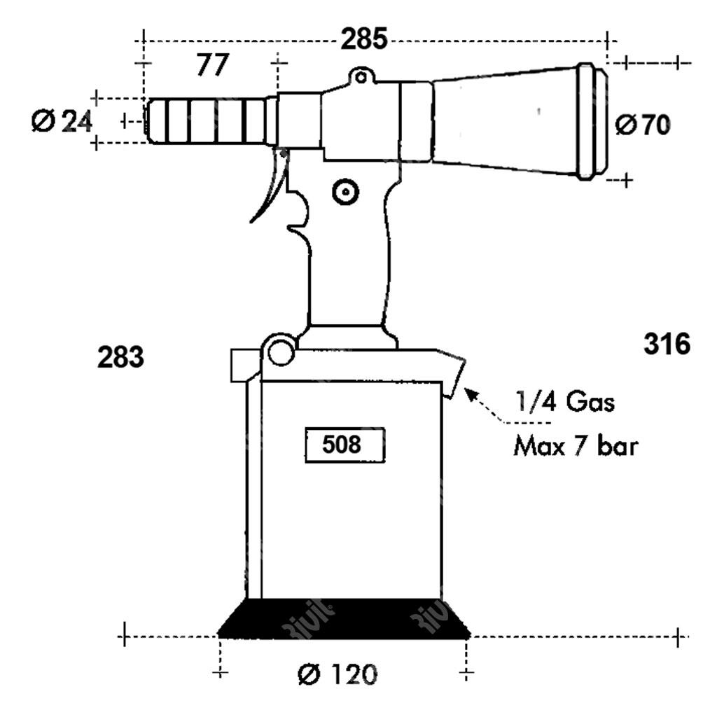 RIV508, standart ve yapısal kör perçinleri d.4,8mm ila d.7,8mm ve kör cıvataları d.4,8mm ve d.6,4mm yerleştirmek için tasarlanmıştır .
